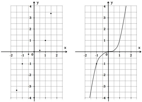 Կառուցենք այն կետերը, որոնց կոորդինատները նշված են աղյուսակում: Նշված կետերով տանենք սահուն գիծ: Կստանանք y = x3 ֆունկցիայի գրաֆիկը:
